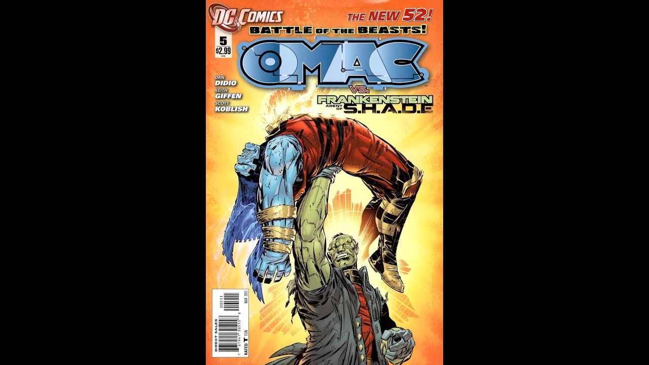 OMAC #5 REVIEW. Omac is getting grilled by Frankenstein’s Monster. And is the Fourth World close by?